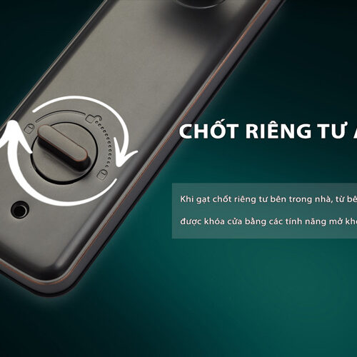Ngoài ra, chốt riêng tư cũng là một công cụ không thể thiếu để đảm bảo mang lại không gian riêng tư cho bạn cũng như người thân trong gia đình. Khi sử dụng chốt riêng tư từ bên trong nhà, chỉ cần một cái gạt tay là bạn đã có thể tăng cường một chốt khoá từ bên trong. Khi đó, từ bên ngoài ngay cả sử dụng vân tay, mã số, thẻ từ thậm chí là chìa khoá cơ cũng không thể mở được cửa.