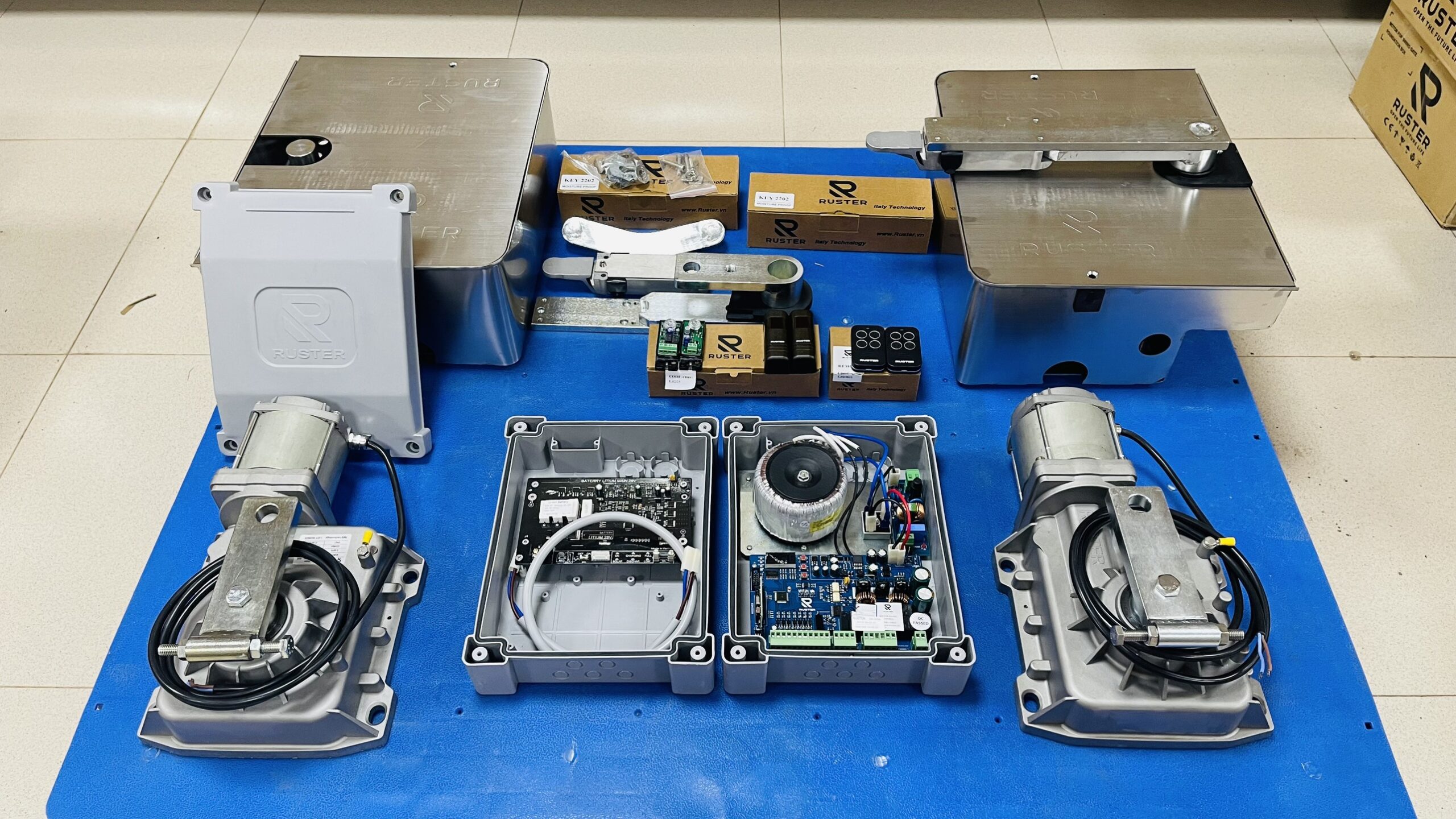 II. Thiết bị đi kèm motor cổng âm sàn tự động Ruster 24V